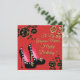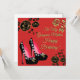 Carte de la fête des mères fond de style japonais rouge chaussures noires et dorées. Carte vierge pour votre message personnel.