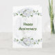 Carte d'anniversaire de mariage avec de jolies roses blanches. Un bouquet de roses en haut et en bas avec un motif de rose clair en arrière-plan. Merci à Design Cuts pour certains éléments du design.