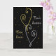 C'est une carte d'anniversaire de mariage élégante avec une image de cœur doré en spirale entremêlée d'un cœur argenté sur un fond noir dramatique. Le fond est parsemé d'étoiles dorées et le texte dit Deux cœurs, Un amour. Le texte à l'intérieur peut être personnalisé. Joli ! *Les cliparts utilisés dans ce design sont la propriété d'Encore Software, Inc., qui permet l'utilisation à ses licenciés. Tous droits réservés.