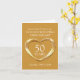 Carte d'anniversaire de mariage d'or personnalisée avec l'année de mariage de vos parents et les mots à l'intérieur. Exemple : Chers maman et papa pour votre anniversaire de mariage d'or 50 ans 25 mai 1969 à 2019. Effet de cœur en métal doré et design par Sarah Trett.
