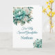 Imaginez cette carte d'anniversaire d'aquarelle fleurie fraîche et imprimée ouverte par votre grand-père spécial avec son nom dessus. teintes Turquoise & vert sur un arrière - plan blanc immaculé. Salutation imprimée à l'intérieur. Customisez et changez le nom de l'échantillon à ce dont vous avez besoin avec ce modèle ou achetez comme indiqué.
