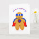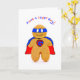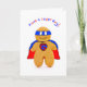 Carte d'anniversaire de personnage de bonhomme en pain d'épices super héros mignon rouge et bleu