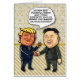 La carte d'anniversaire Snarky Donald Trump montre son nouvel ami Kim Jong Un et se targue de la taille de sa foule inaugurale. Caricature colorée sur la couverture avec un arrière - plan grunge en ivoire.