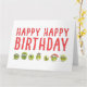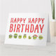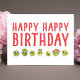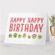 Cette drôle de carte d'anniversaire de veggie présente un joyeux tas de choux bruxellois aux yeux de googly et un texte rouge gras qui dit "HAPPY HAPPY HAPPY BANTHDAY." C’est une façon amusante et excentrique de célébrer — parfaite pour les amateurs de veggie, les amis à base de plantes ou toute personne qui aime bien rire. A l'intérieur, un message convivial et une petite rangée de légumes pour plus de charme. Bon appétit !