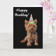 Joyeux anniversaire Yorkshire Terrier dans une carte d'anniversaire de casquette d'anniversaire