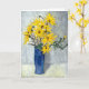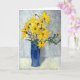 Une carte d'anniversaire avec un tableau pastel original à l'huile de tournesols dans un grand vase bleu.