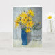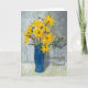 Une jolie carte d'anniversaire avec "Joyeux anniversaire" en gallois et un vase bleu de tournesols jaunes dorés, d'un tableau pastel à l'huile de Judy Adamson.