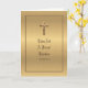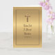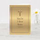 Magnifique carte d'anniversaire d'ordination de prêtre catholique avec reflets dorés, comportant un verset des Écritures et une illustration en ligne à l'intérieur.