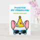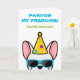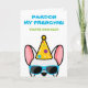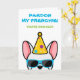 Si vous connaissez quelqu'un qui aime les bouledogues français et a un bon sens de l'humour, cette carte d'anniversaire de frenchie drôle est idéale pour leur envoyer le jour de leur fête. Le design présente une illustration de style cartoon d'un bouledogue français de couleur blanche portant un chapeau de fête et des lunettes de soleil avec le texte "Pardon my frenchie ! Vous avez quel âge ?" écrit sur le devant. Ce design est également disponible avec des bouledogues français de différentes couleurs.