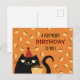 Célébrez de manière amusante et joyeuse avec cette carte postale d'anniversaire de chat mignonne avec un design ludique et un motif de cupcake. Avec le message « Joyeux Anniversaire ! », elle apporte une atmosphère légère et joyeuse à toute célébration d'anniversaire.