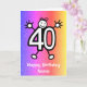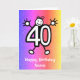 Dessin animé mignon d'un numéro quarante avec un visage souriant et des mains et des pieds. Dessin animé drôle pour 40 ans. La carte a un fond d'effet pailleté coloré. Envoyez cette carte pour célébrer un quarantième anniversaire ! Personnalisez facilement cette carte en modifiant le texte du modèle sur le devant et à l'intérieur. Merci de consulter mes créations !