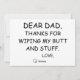C'est une carte d'anniversaire drôle pour papa avec un nom personnalisable et un message au dos. Meilleure carte d'anniversaire de fille à papa.