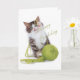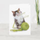 adorable petite chatte joue avec du fil, le message intérieur est encourageant et dit que vous n'avez que l'âge que vous ressentez, une carte d'anniversaire aiguë pour n'importe qui