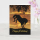 Une façon amusante d'espérer que quelqu'un soit un coup de pied de leur anniversaire ! Un cheval se sentant frisky, le levant dans un lever de soleil très cool.
