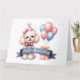 Une carte d'anniversaire pour chien mignon Poodle. Beau chien avec quelques ballons colorés et des cadeaux. Beau chien un casquette de fête. Joyeux anniversaire imprimé sur un ruban tourbillonnant ci-dessous. Cette carte est vide à l'intérieur pour que vous puissiez écrire votre propre message. Disponible en téléchargement instantané pour vous permettre de transférer vers d'autres produits en magasin.