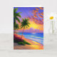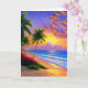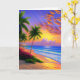 Carte d'anniversaire tropicale avec un coucher de soleil spectaculaire, des palmiers et des vagues de l'océan. Personnalisez avec votre propre dicton si vous le souhaitez.
