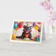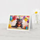 La façade de cette carte d'anniversaire présente un design animé et énergique avec un personnage de dessin animé, un animal mignon et espiègle qui ressemble à un diable de Tasmanie. Le personnage porte un casquette rayé et a un large sourire joyeux, donnant une ambiance ludique et amusante. Devant le personnage se trouve un petit gâteau d'anniversaire surmonté de bougies, prêt à être célébré. Autour de la scène, des ballons aux couleurs vives dans les tons jaune, violet, bleu et rouge, créent une ambiance festive. Les mots "Joyeux Anniversaire" sont écrits dans une police ludique et incurvée dans les coins supérieur gauche et droit, encadrant parfaitement le personnage. Le texte est en noir avec un contour jaune, le faisant apparaître contre l'arrière - plan vibrant. La bordure de la carte est un cadre jaune dégradé et coloré avec une texture subtile, ajoutant une couche supplémentaire d'excitation à la conception. Dans l'ensemble, la carte dégage un sentiment d'amusement, de joie et de fête, ce qui en fait l'endroit idéal pour l'anniversaire d'un jeune enfant qui aime les personnages animés et le plaisir de la fête !