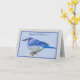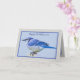 Ce beau geai bleu semble paisible avec sa crête, qui se tient normalement droite, se couchant contre sa tête. Il fait une belle carte de voeux d'anniversaire.