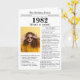 Dites un joyeux anniversaire à quelqu'un né en 1982 avec cette carte d'anniversaire unique de style journal, y compris une photo du récipiendaire et une collection de faits amusants et des nouvelles du monde de l'année de leur naissance. Soyez créatif et créez un souvenir personnalisé. Conçu pour ressembler à un journal vintage de style classique noir et blanc. Une façon mignonne et amusante de célébrer les années 1980!