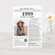 Disez un joyeux anniversaire avec cette carte d'anniversaire de style journal unique, y compris une photo du récipiendaire et une collection de faits amusants et des nouvelles du monde de 1999. Soyez créatif et créez un souvenir personnalisé. Conçu pour ressembler à un journal vintage de style classique noir et blanc. Une façon mignonne et amusante de célébrer les années 90!