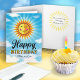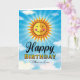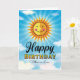 Faites de votre beau-père un homme spécial pour son anniversaire en lui envoyant ce joyeux sourire soleil décoratif jaune et orange flottant dans le ciel bleu avec des nuages. Dans le texte dit "Le soleil a commencé à briller juste un peu plus brillant le jour de votre naissance."