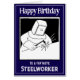Joyeux anniversaire à un métallurgiste. Illustration Steel Worker. Personnalisez avec votre choix de texte et de message intérieur. Carte d'anniversaire pour un travailleur de l'acier, un métallurgiste ou un métallurgiste.