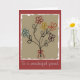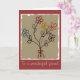 Charmante carte d'anniversaire avec mon design floral mixte original avec un tableau enfant de cinq fleurs simples à cinq pétales - chacune dans une couleur différente : un bleu aqua, un rouge profond, un jaune doré, un orange et un violet. Chaque fleur a une tige représentée par une seule ligne avec deux feuilles et le bouquet est attaché avec un petit arc en fil rouge. L'arrière - plan de la peinture a des arêtes rugueuses et un aspect marron et vieilli qui lui donne l'impression d'avoir été peint il y a longtemps. J'ai créé cette carte entièrement personnalisable en tant que carte d'anniversaire, mais elle serait également appropriée pour de nombreuses occasions différentes ou juste pour chaque fois que vous voulez envoyer un petit sourire à quelqu'un.