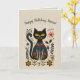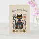 Cette belle carte présente une illustration d'un chat noir d'art populaire avec un message modifiable au-dessus. À l'intérieur se trouve un message modifiable. Vous pouvez utiliser ceci comme carte d'anniversaire ou comme carte pour n'importe quelle occasion. Vous pouvez modifier le message ainsi que le style, la taille et la couleur de la police ou le supprimer pour créer une carte vierge. Les couleurs de fond peuvent également être modifiées à l'intérieur et au dos. Crédit artistique : Lynda McDaniel-Smith, 2024.