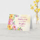 Jolie et réfléchie carte de voeux pour l'anniversaire de votre fille avec des fleurs de printemps jaune, violet et rose, motif d'aquarelle rustique et texte de style lettré à la main.