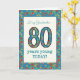 Une carte d'anniversaire assez spécifique à l'âge pour une grand-mère de quatre-vingt ans, avec le numéro 80 et la frontière remplie de rétro motif floral coloré sur un arrière - plan turquoise. Le motif floral fait partie de la collection snob et Painterly "d'impression de mamie", d'un collage de papier peint à la main par Judy Adamson. Cette conception adaptera toutes les tailles de carte de voeux.