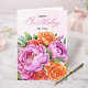 Célébrez un anniversaire avec une beauté florale intemporelle. Cette élégante carte de joyeux anniversaire présente un bouquet aquarellé luxuriant de pivoines roses et de roses orange chaudes, associé à une verdure douce et à une écriture élégante sur le devant. Le design floral raffiné se sent classique tout en étant frais, ce qui en fait un choix magnifique pour des célébrations d'anniversaire pleines de sens.