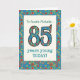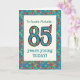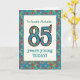 Une carte d'anniversaire assez spécifique à l'âge pour qu'un Quatre-vingts-cinq-année-vieux personnalise, avec le numéro 85 et la frontière remplie de rétro motif floral coloré sur un arrière - plan turquoise. Le motif floral fait partie de la collection snob et Painterly "d'impression de mamie", d'un collage de papier peint à la main par Judy Adamson. Cette conception adaptera toutes les tailles de carte de voeux.