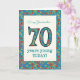 Une jolie carte d'anniversaire spécifique à l'âge pour une grand-mère de soixante-dix ans, avec le numéro 70 et la bordure remplie d'un motif rétro coloré à fleurs sur un arrière - plan turquoise. Le motif floral fait partie de la collection Posh & Painterly 'Granny Print', d'un collage de papier peint à la main par Judy Adamson. Cette conception s'adaptera à toutes les tailles de cartes de voeux.