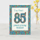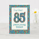 Une carte d'anniversaire assez spécifique à l'âge pour un Quatre-vingts-cinq-année-vieil ami, avec le numéro 85 et la frontière remplie de rétro motif floral coloré sur un arrière - plan turquoise. Le motif floral fait partie de la collection snob et Painterly "d'impression de mamie", d'un collage de papier peint à la main par Judy Adamson. Cette conception adaptera toutes les tailles de carte de voeux.
