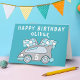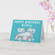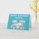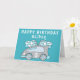 Carte d'anniversaire garçon drapeau de course voiture bleue. Cette carte comporte une voiture de course bleue avec un âge et des drapeaux de course bleus et blancs. Ajoutez votre nom et l'âge sur la voiture de course. Ajoutez votre message à l'intérieur ou effacez-le.