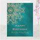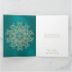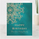 Une belle carte d'anniversaire TEAL et or aux tons de bijoux avec un motif de médaillon de sari ornemental indien de luxe et de haut de gamme, exotique et ethnique, avec un design de soleil floral et de lotus. Cette carte d'anniversaire élégante et belle dans le style indien moderne a un thème et une apparence formels, est-asiatiques indonésiens et/ou marocains des Mille et Une Nuits ou d'Aladdin. Conception © Chrissy H. Studios, LLC. Tous droits réservés.