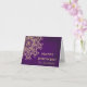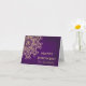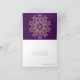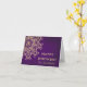 Une belle carte d'anniversaire violette améthyste et or de ton bijou avec un motif de médaillon de sari ornemental indien luxueux et exotique de style ethnique avec un design floral et ensoleillé de lotus. Cette élégante et belle carte d'anniversaire moderne de style indien a un thème et une apparence formels, est-asiatiques indonésiens et/ou marocains des Mille et Une Nuits ou d'Aladdin. Conception © Chrissy H. Studios, LLC. Tous droits réservés.