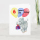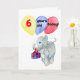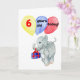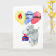 Une carte d'anniversaire pour un enfant de 6 ans avec un petit éléphant peint à la main portant un cadeau et des ballons. 'Joyeux anniversaire' à l'intérieur.