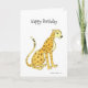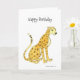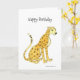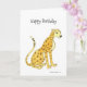 Illustration colorée d'un léopard à l'avant de la carte et à l'intérieur, il y a des empreintes de pattes clairs au fond de la carte.