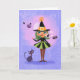 Dans un décor de lavande et de rose, une bonne sorcière magique utilise ses enchantements pour se dorloter tandis que son curieux chat noir observe. Illustration originale de Noël Snow.