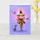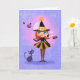 Dans un décor de lavande et de rose, une bonne sorcière magique utilise ses enchantements pour se dorloter tandis que son curieux chat noir observe. Illustration originale de Noël Snow.