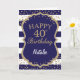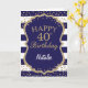 Parties scintillant bleu marine et or confetti 40e Anniversaire Carte avec nom personnalisé. Pour plus de personnalisation, cliquez sur le bouton "Customiser" et utilisez notre outil de conception pour modifier ce modèle.