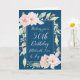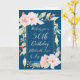 Bonne carte de 50ème anniversaire en bleu marine avec fleurs d'aquarelle rose et verset réfléchi.