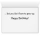 Cette carte d'anniversaire comporte un joli jeune orangs-outan qui regarde sur un rond. Le texte sur la couverture dit "Vous ne pouvez pas vous empêcher de vieillir..." Le texte intérieur dit "... mais vous n'avez pas à grandir. Joyeux anniversaire !" Tout le texte est entièrement personnalisable.