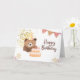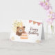 Une carte de vœux d'anniversaire mignonne avec un adorable ours en peluche assis devant un gâteau d'anniversaire avec des décorations festives et les mots « Joyeux Anniversaire ». Parfaite pour les enfants, les amis et les proches.