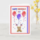 Célébrez n'importe quel anniversaire de militaire ou de femme avec cet amusement, la carte colorée qui comporte une frontière rouge, une rayure bleue, des lettres rouges et bleues, des étoiles, des drapeaux américains et des bottes de combat. Étiquettes de chien du design de carte ©2012 et bottes de combat