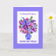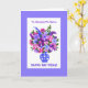 Une carte d'anniversaire pour personnaliser, avec un bouquet de fleurs roses, bleues et violettes, d'un collage de papier peint à la main par Judy Adamson. Le nom du destinataire, le message de couverture avant et le message intérieur peuvent tous être customisés et cette carte peut être utilisée pour de nombreuses occasions autres que les anniversaires.