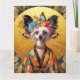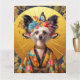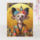 Carte de voeux de style vintage avec Chien de race chinoise habillé en Kimono. Facultatif : Remplacez l'image par votre propre photo.