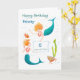 Une carte d'anniversaire à personnaliser avec l'âge et le nom du destinataire, avec deux sirènes, un poisson et un crabe ermite, à partir d'une illustration aquarelle de Judy Adamson. N'hésitez pas à modifier ou à supprimer le message intérieur au besoin.