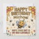 Célébrez le grand jour de votre petit avec cette adorable carte d'anniversaire personnalisée sur le thème de l'abeille pour son 1er anniversaire. Avec son motif moderne de nid d'abeilles jaune et son illustration d'abeille adorable, ce design "Hap-bee Anniversaire" est parfait pour Michael (ou n'importe quel nom !).